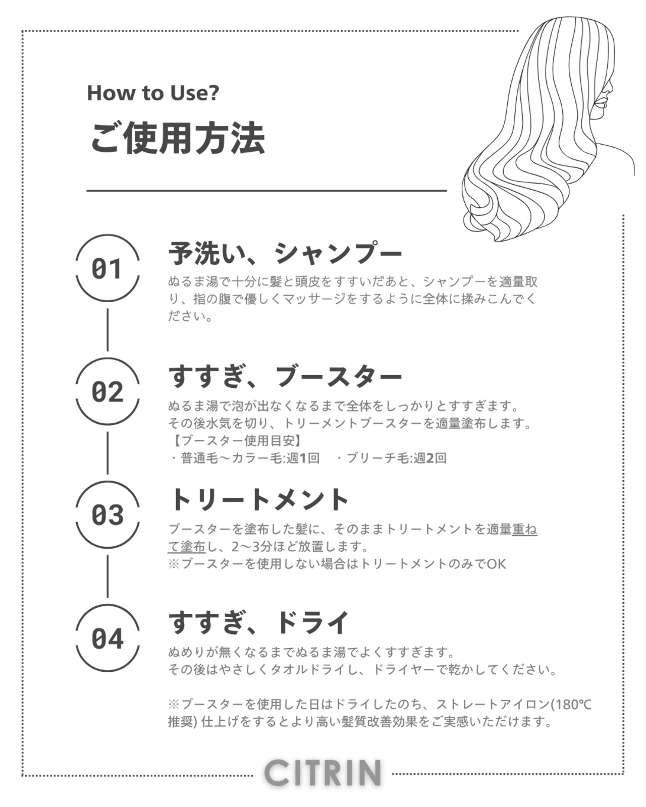 パサつきを抑えながら、自然なツヤと指通りの良さをご実感いただけます。