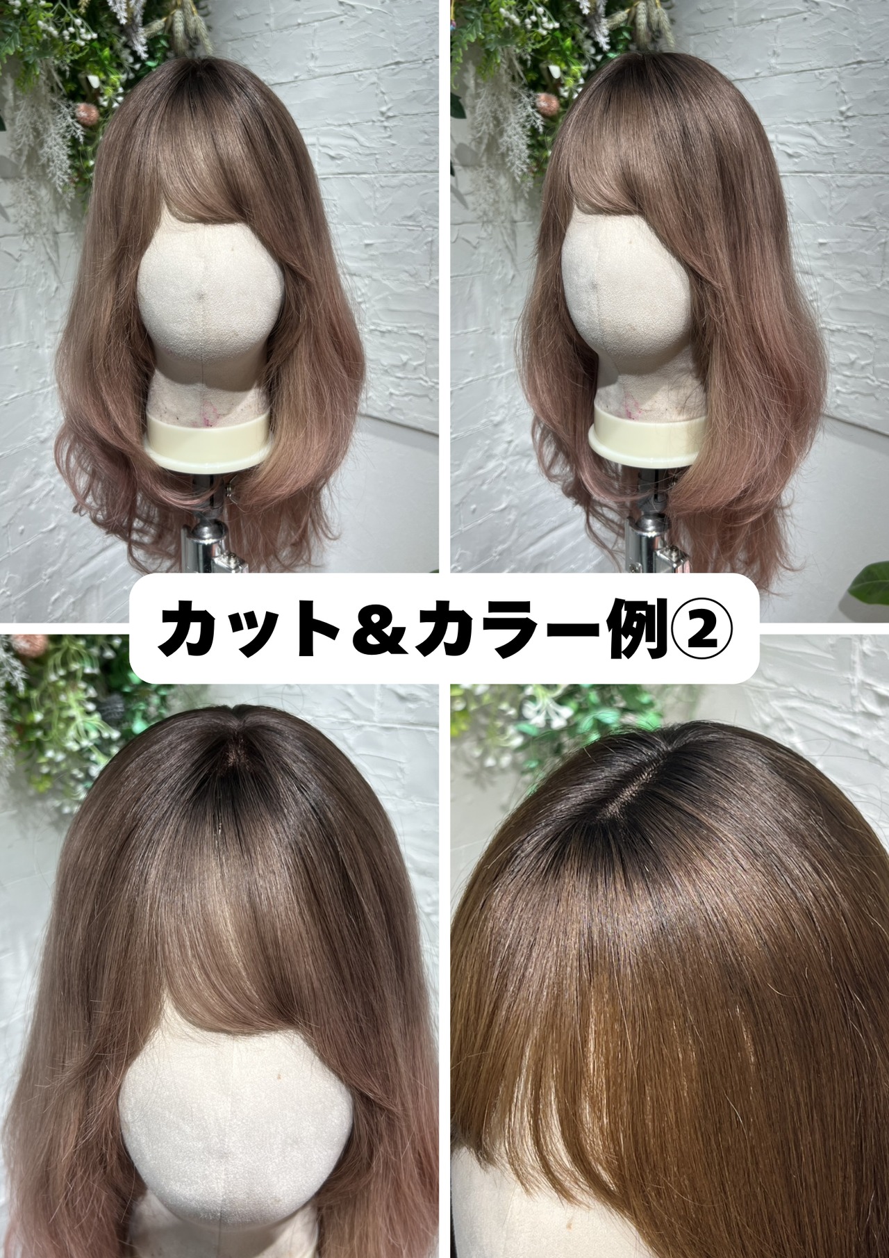 お近くの美容室にてカット/カラーを行っていただくか、当店に備考欄に明記のうえご依頼ください。(別途カット/カラー代が発生いたします)